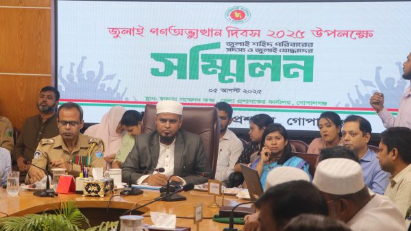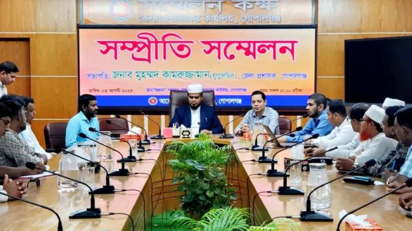 রাজিয়া সুলতানা: জেলা প্রশাসনের আয়োজনে গোপালগঞ্জে সম্প্রিতি বিষয়ক সম্মেলন অনুষ্ঠিত হয়েছে। আজ রবিবার (৩ আগষ্ট) সকালে গোপালগঞ্জ জেলা প্রশাসকের কার্যালয়ে এই সম্মেলন অনুষ্ঠিত হয়। জেলা প্রশাসক মুহম্মদ কামরুজ্জামানের সভাপতিত্বে এসময়